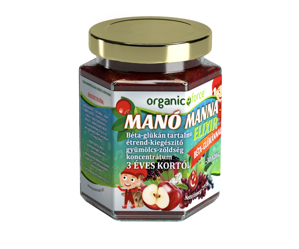 A Manó Manna Elixír egy olyan étrendkiegészítő szuperkoncentrátum, amely Yestimun béta-glükánt és 9-féle – magas vitamin és hatónyagtartalmú – gyümölcs-zöldség sűrítményét tartalmaza: bodzabogyó, csicsóka, almarost, vörös szőlő, fekete ribizli, cékla, fekete berkenye, meggy, áfonya