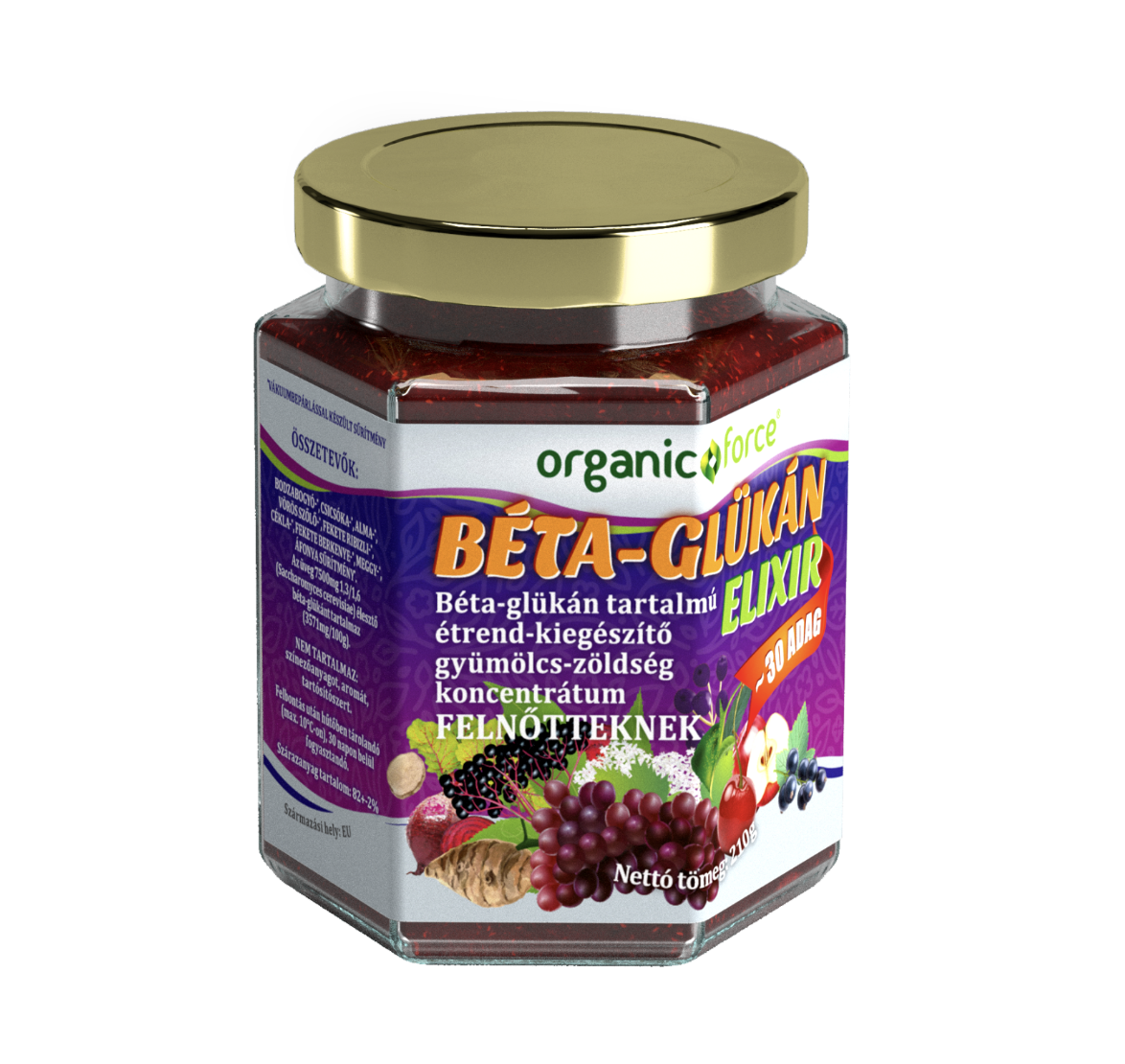 A Béta-glükán Elixír egy olyan étrendkiegészítő szuperkoncentrátum, amely Yestimun béta-glükánt és 9-féle – magas vitamin és hatóanyagtartalmú – gyümölcs-zöldség sűrítményét tartalmaza: bodzabogyó, csicsóka, almarost, vörös szőlő, fekete ribizli, cékla, fekete berkenye, meggy, áfonya